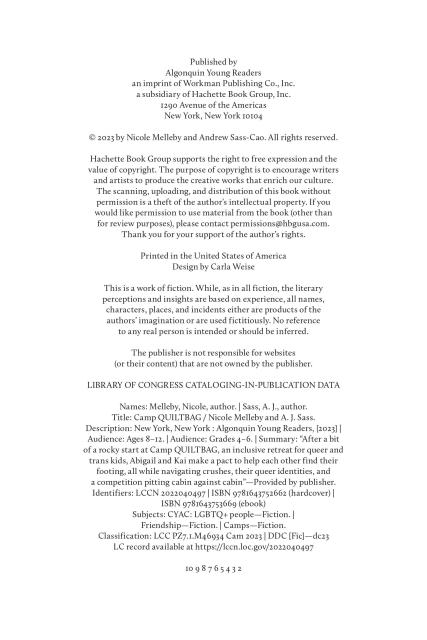 Twelve-year-old Abigail (she/her/hers) is so excited to spend her summer at Camp QUILTBAG, an inclusive retreat for queer and trans kids. She can’t wait to find a community where she can be herself—and, she hopes, admit her crush on that one hot older actress to kids who will understand.